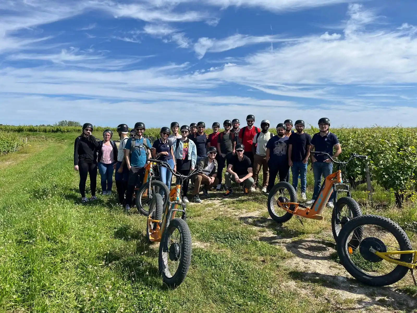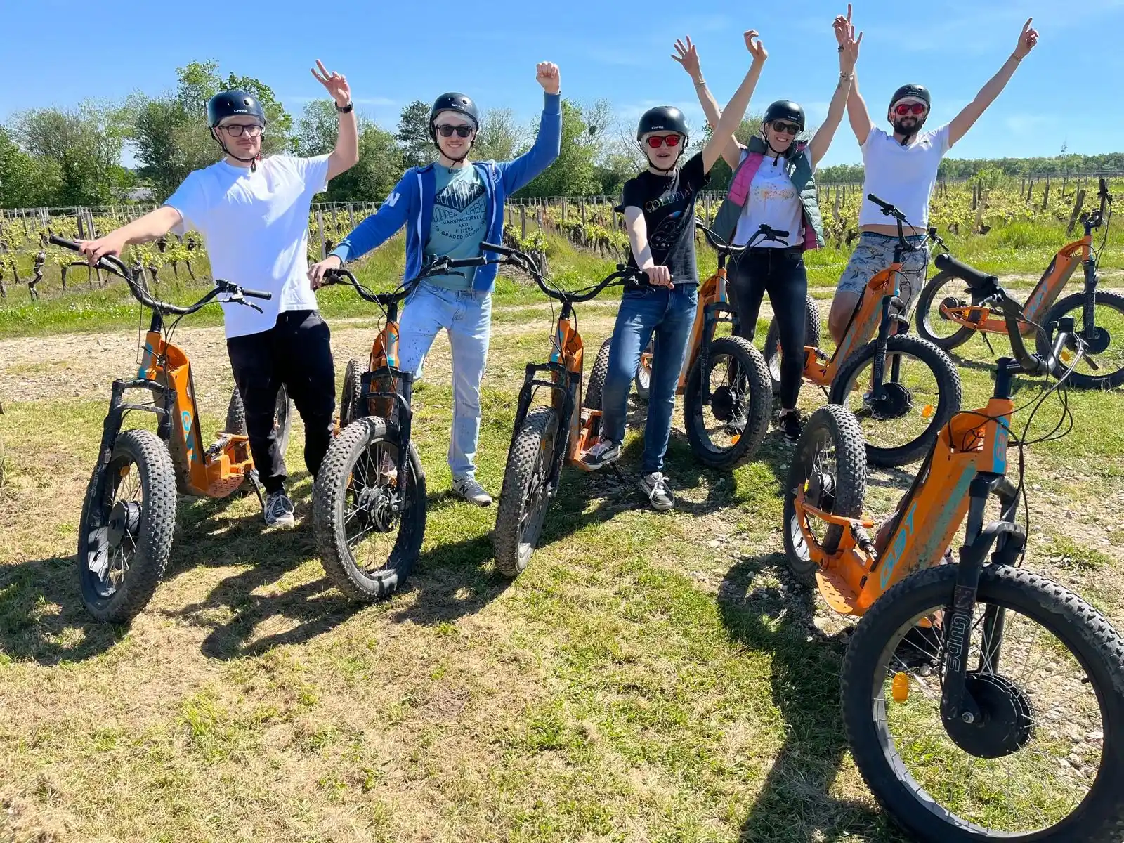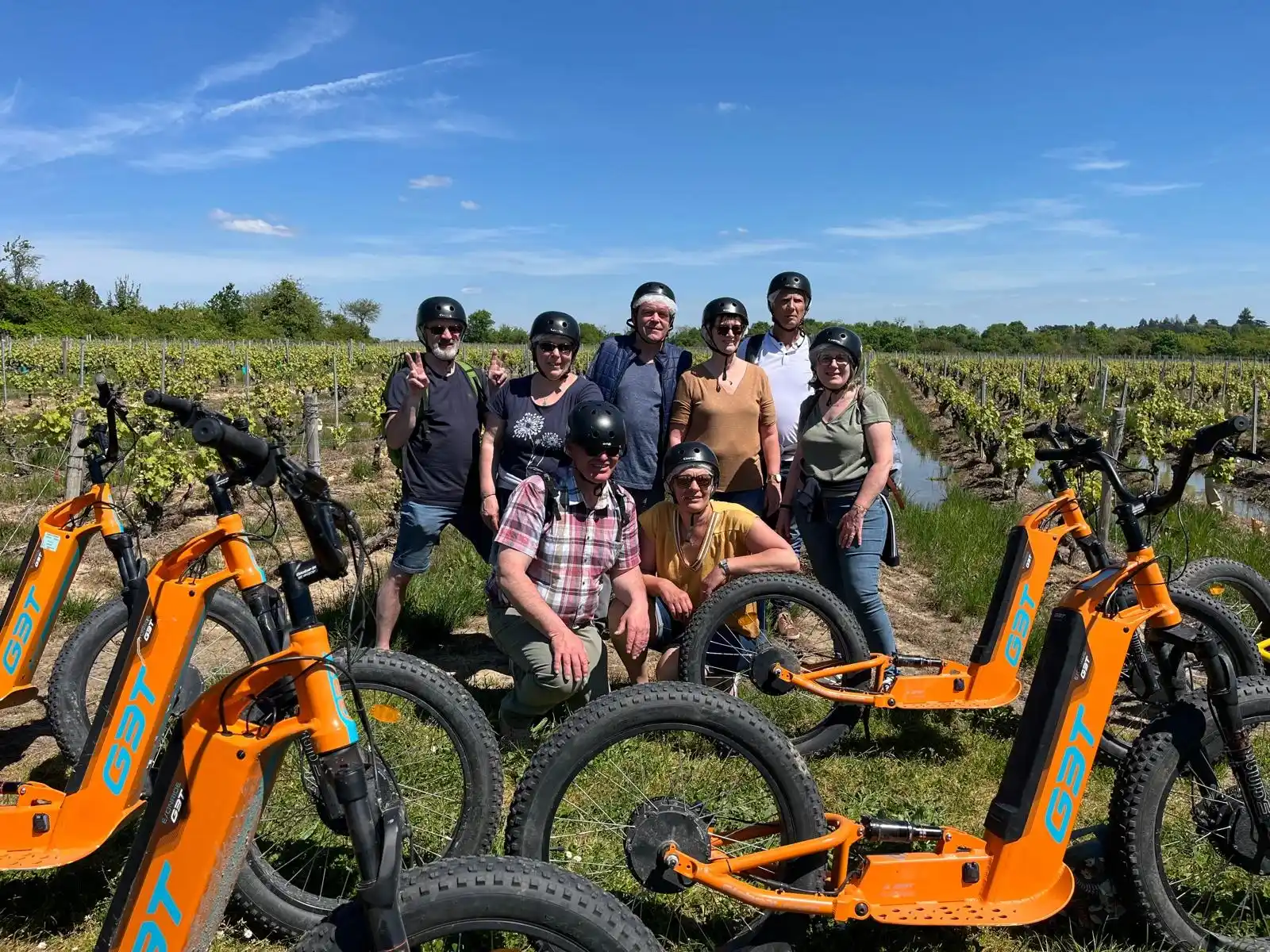 Balade en trottinettes électrique tout-terrain ou cross dans les vignes du domaine Domaine FL qui vous accueillera ensuite et vous fera découvrir ces vins bio dans son chai ultra moderne.