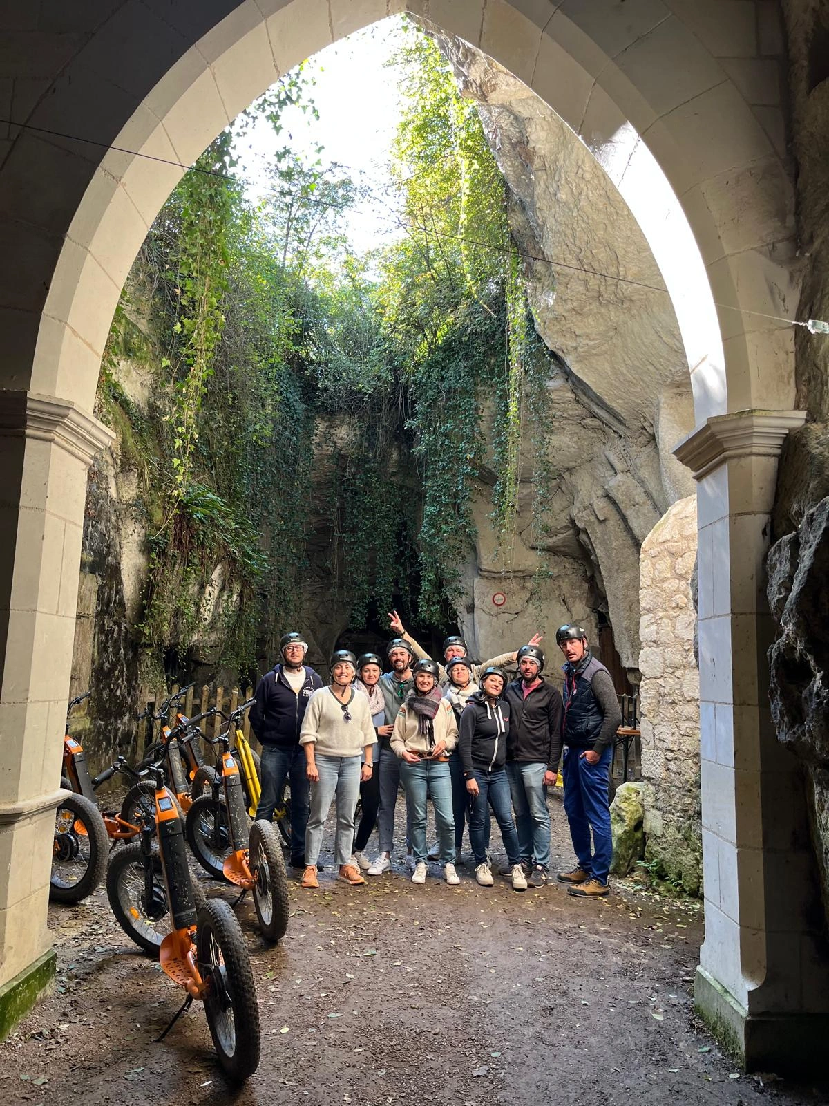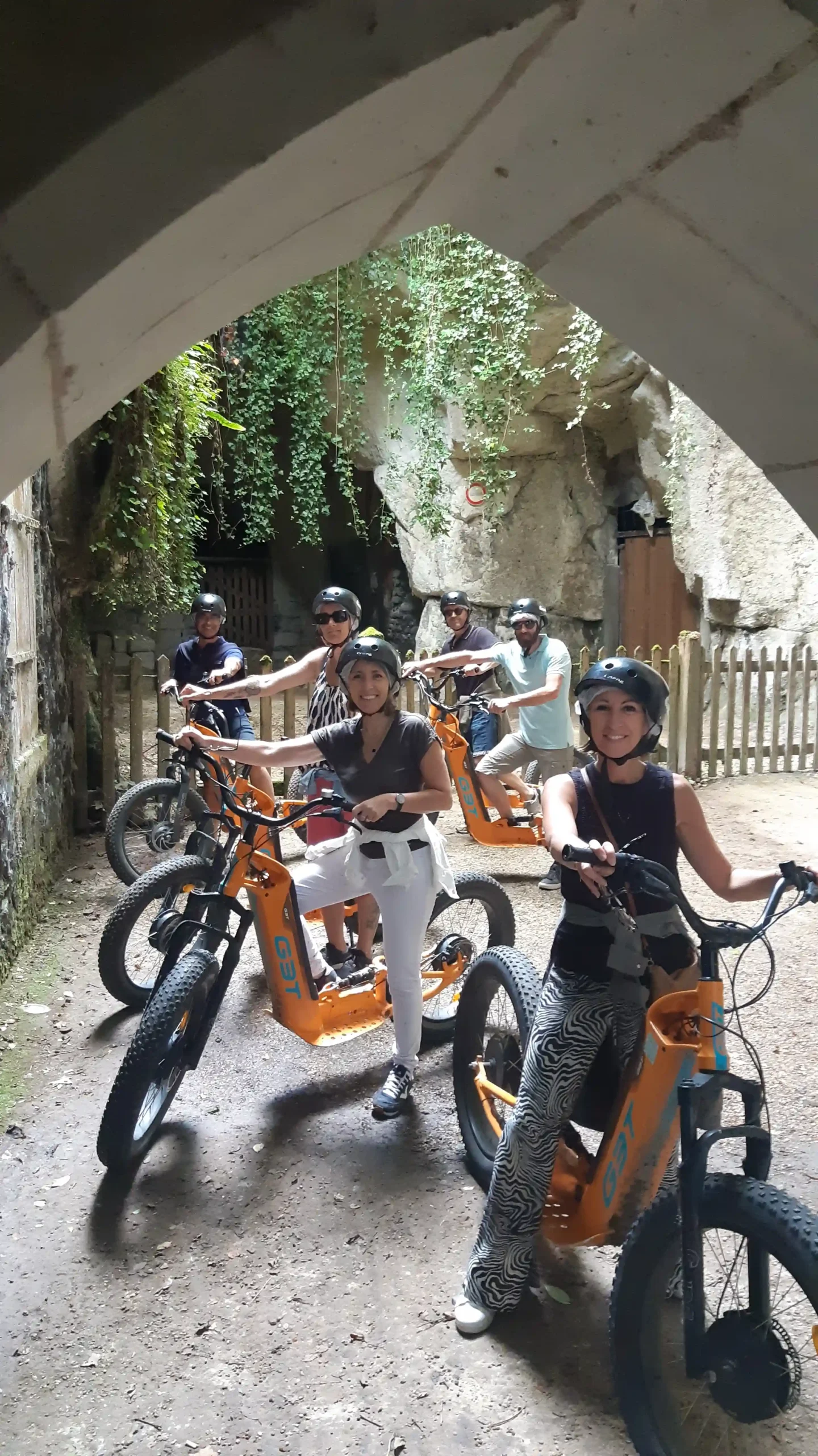 Départ du parking le long de la Loire après une initiation aux trottinettes électriques tout-terrain