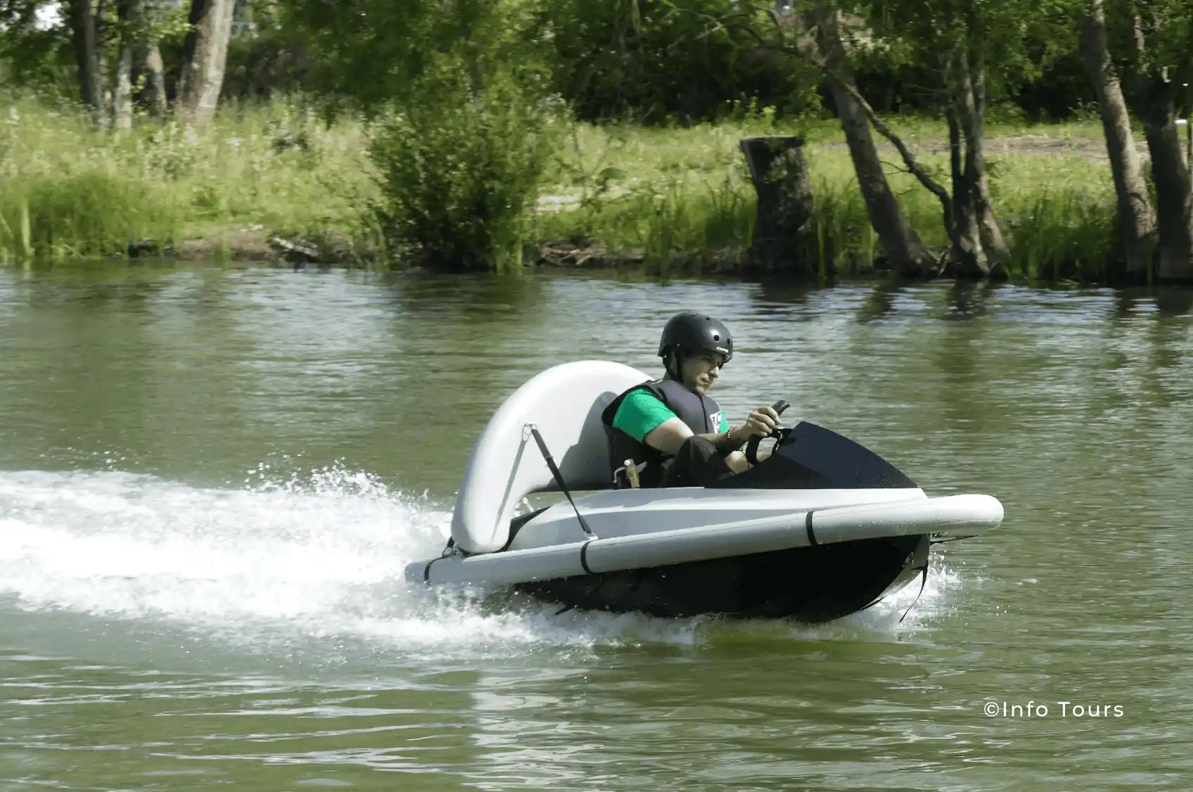 Prenez les commandes d’un kart aquatique électrique et affrontez vos amis dans une course sur l’eau ! Sensations garanties.